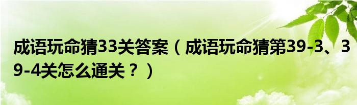 大家好,今天小悦来为大家解答以上问题。成语玩命猜33关答案,成语玩命猜第39-3、39-4关怎么通关?很多人还不知道,现在让我们一起来看看吧!