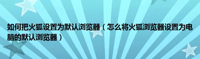 以上就是怎么将火狐浏览器设置为电脑的默认浏览器的具体操作步骤。