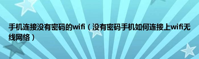 大家好,今天小悦来为大家解答以上问题。手机连接没有密码的wifi,没有密码手机如何连接上wifi无线网络很多人还不知道,现在让我们一起来看看吧!
