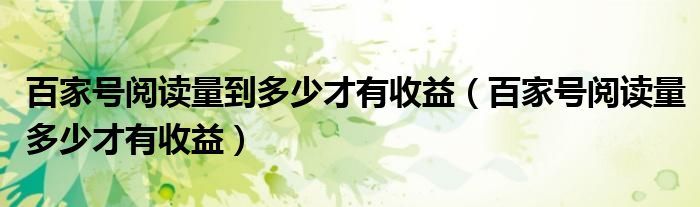 大家好,跳跳为你解答以上问题。百家号阅读量到多少才有收益,百家号阅读量多少才有收益这个问题很多人还不知道,现在让我们一起来看看吧!