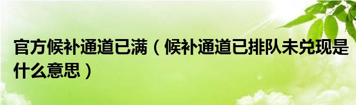 大家好,跳跳为你解答以上问题。官方候补通道已满,候补通道已排队未兑现是什么意思这个问题很多人还不知道,现在让我们一起来看看吧!