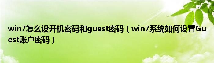 大家好,小太来为大家解答以上问题。win7怎么设开机密码和guest密码,win7系统如何设置Guest账户密码很多人还不知道,现在让我们一起来看看吧!