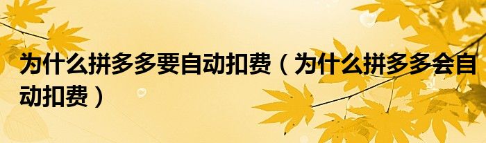 为什么拼多多要自动扣费(为什么拼多多会自动扣费)