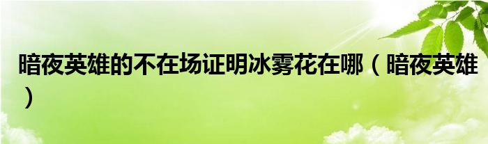 大家好,慧慧来为大家解答以上问题,暗夜英雄的不在场证明冰雾花在哪,暗夜英雄很多人还不知道,现在让我们一起来看看吧!