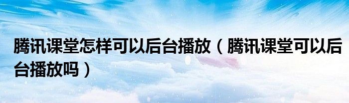 腾讯课堂怎样可以后台播放(腾讯课堂可以后台播放吗)