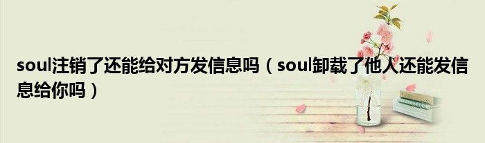 大家好,跳跳为你解答以上问题。soul注销了还能给对方发信息吗,soul卸载了他人还能发信息给你吗这个问题很多人还不知道,现在让我们一起来看看吧!