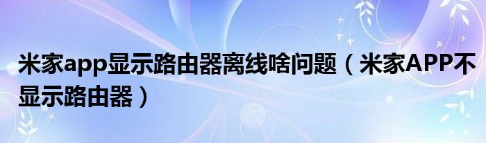 大家好,跳跳为你解答以上问题。米家app显示路由器离线啥问题,米家APP不显示路由器这个问题很多人还不知道,现在让我们一起来看看吧!