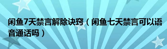 大家好,跳跳为你解答以上问题。闲鱼7天禁言解除诀窍,闲鱼七天禁言可以语音通话吗这个问题很多人还不知道,现在让我们一起来看看吧!
