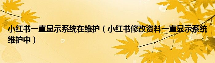 大家好,跳跳为你解答以上问题。小红书一直显示系统在维护,小红书修改资料一直显示系统维护中这个问题很多人还不知道,现在让我们一起来看看吧!