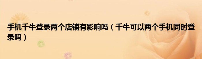 大家好,跳跳为你解答以上问题。手机千牛登录两个店铺有影响吗,千牛可以两个手机同时登录吗这个问题很多人还不知道,现在让我们一起来看看吧!