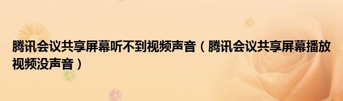大家好,跳跳为你解答以上问题。腾讯会议共享屏幕听不到视频声音,腾讯会议共享屏幕播放视频没声音这个问题很多人还不知道,现在让我们一起来看看吧!