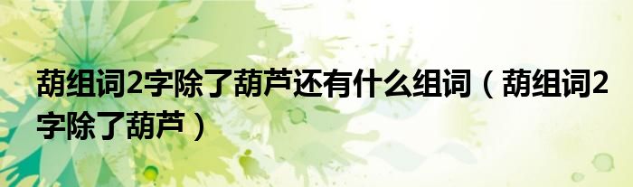 葫组词2字除了葫芦还有什么组词(葫组词2字除了葫芦)