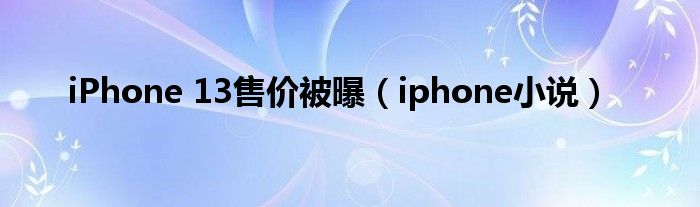 大家好,慧慧来为大家解答以上问题,iPhone 13售价被曝,iphone小说很多人还不知道,现在让我们一起来看看吧!