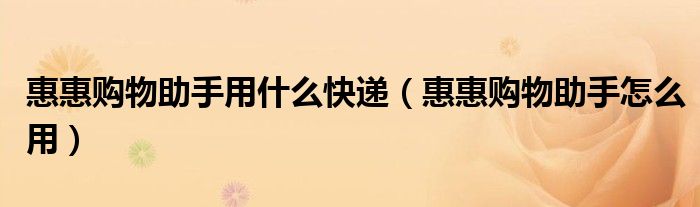 惠惠购物助手用什么快递(惠惠购物助手怎么用)