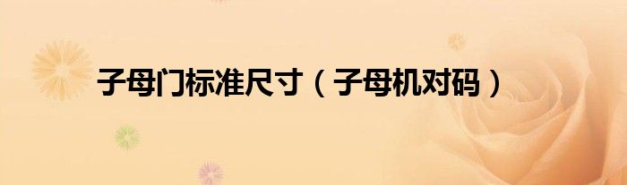 大家好,慧慧来为大家解答以上问题,子母门标准尺寸,子母机对码很多人还不知道,现在让我们一起来看看吧!