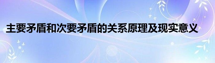 关于主要矛盾和次要矛盾的关系原理及现实意义这个很多人还不知道,今天菲菲来为大家解答以上的问题,现在让我们一起来看看吧!