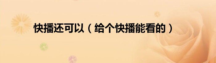 大家好,慧慧来为大家解答以上问题,快播还可以,给个快播能看的很多人还不知道,现在让我们一起来看看吧!