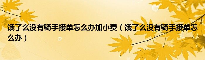 大家好,跳跳为你解答以上问题。饿了么没有骑手接单怎么办加小费,饿了么没有骑手接单怎么办这个问题很多人还不知道,现在让我们一起来看看吧!