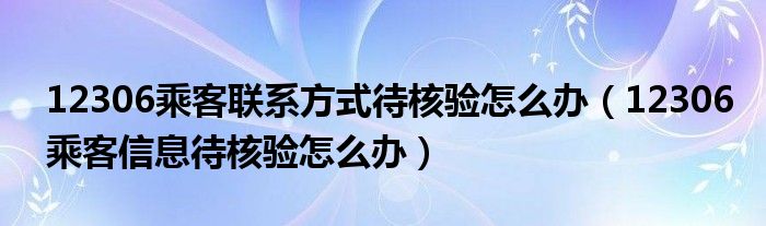 大家好,跳跳为你解答以上问题。12306乘客联系方式待核验怎么办,12306乘客信息待核验怎么办这个问题很多人还不知道,现在让我们一起来看看吧!