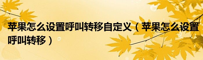 大家好,小晋来为大家解答以下问题,关于苹果怎么设置呼叫转移自定义,苹果怎么设置呼叫转移很多人还不知道,今天让我们一起来看看吧!