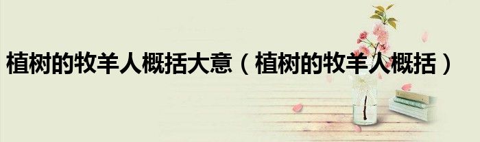 大家好,小晋来为大家解答以下问题,关于植树的牧羊人概括大意,植树的牧羊人概括很多人还不知道,今天让我们一起来看看吧!