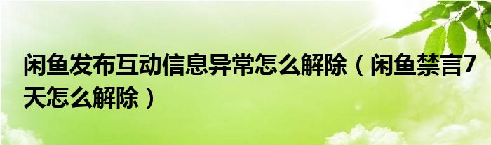 大家好,跳跳为你解答以上问题。闲鱼发布互动信息异常怎么解除,闲鱼禁言7天怎么解除这个问题很多人还不知道,现在让我们一起来看看吧!