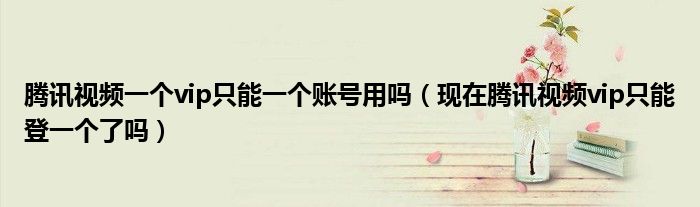 大家好,跳跳为你解答以上问题。腾讯视频一个vip只能一个账号用吗,现在腾讯视频vip只能登一个了吗这个问题很多人还不知道,现在让我们一起来看看吧!