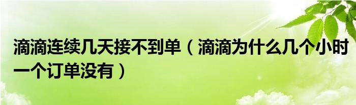 滴滴连续几天接不到单(滴滴为什么几个小时一个订单没有)