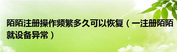 大家好,跳跳为你解答以上问题。陌陌注册操作频繁多久可以恢复,一注册陌陌就设备异常这个问题很多人还不知道,现在让我们一起来看看吧!