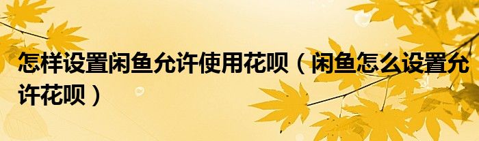 大家好,跳跳为你解答以上问题。怎样设置闲鱼允许使用花呗,闲鱼怎么设置允许花呗这个问题很多人还不知道,现在让我们一起来看看吧!