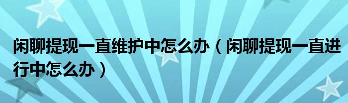 大家好,跳跳为你解答以上问题。闲聊提现一直维护中怎么办,闲聊提现一直进行中怎么办这个问题很多人还不知道,现在让我们一起来看看吧!