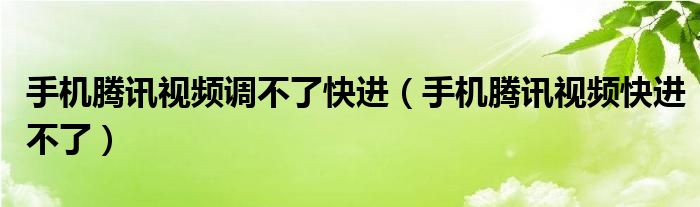 手机腾讯视频调不了快进(手机腾讯视频快进不了)
