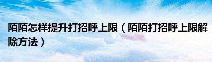 大家好,跳跳为你解答以上问题。陌陌怎样提升打招呼上限,陌陌打招呼上限解除方法这个问题很多人还不知道,现在让我们一起来看看吧!