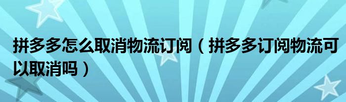 拼多多怎么取消物流订阅(拼多多订阅物流可以取消吗)