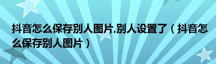 抖音怎么保存别人图片,别人设置了(抖音怎么保存别人图片)