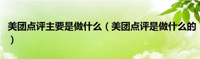 大家好,跳跳为你解答以上问题。美团点评主要是做什么,美团点评是做什么的这个问题很多人还不知道,现在让我们一起来看看吧!