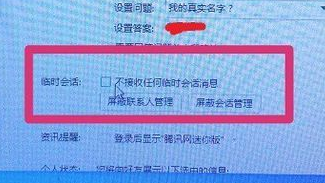 6、如下图所示,在临时会话选项中找到:“不接受任何临时会话消息”,然后使用鼠标将它勾选上即可!