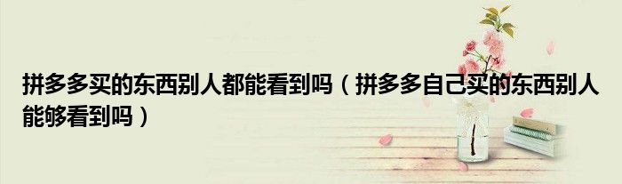 大家好,跳跳为你解答以上问题。拼多多买的东西别人都能看到吗,拼多多自己买的东西别人能够看到吗这个问题很多人还不知道,现在让我们一起来看看吧!