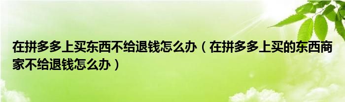 大家好,跳跳为你解答以上问题。在拼多多上买东西不给退钱怎么办,在拼多多上买的东西商家不给退钱怎么办这个问题很多人还不知道,现在让我们一起来看看吧!