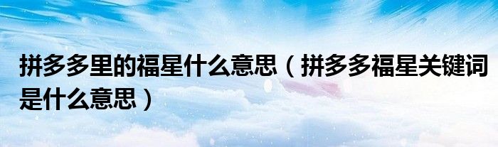 大家好,跳跳为你解答以上问题。拼多多里的福星什么意思,拼多多福星关键词是什么意思这个问题很多人还不知道,现在让我们一起来看看吧!