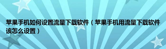 大家好,熊熊为你解答以上问题。苹果手机如何设置流量下载软件,苹果手机用流量下载软件该怎么设置这个很多人还不知道,现在让我们一起来看看吧!