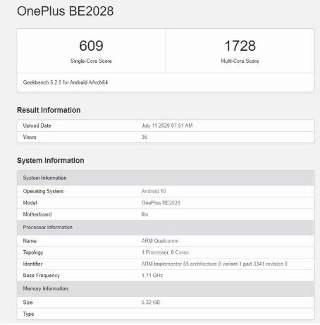Geekbench平台最近记录了神秘的OnePlus智能手机的通过。它已注册为OnePlus BE2028,向我们展示了比Nord低的规格。