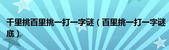 大家好,小晋来为大家解答以下问题,关于千里挑百里挑一打一字谜,百里挑一打一字谜底很多人还不知道,今天让我们一起来看看吧!