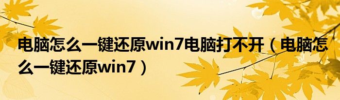 大家好,小晋来为大家解答以下问题,关于电脑怎么一键还原win7电脑打不开,电脑怎么一键还原win7很多人还不知道,今天让我们一起来看看吧!