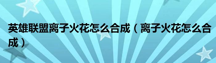 大家好,小晋来为大家解答以下问题,关于英雄联盟离子火花怎么合成,离子火花怎么合成很多人还不知道,今天让我们一起来看看吧!