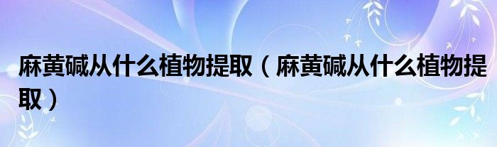 大家好,小晋来为大家解答以下问题,关于麻黄碱从什么植物提取,麻黄碱从什么植物提取很多人还不知道,今天让我们一起来看看吧!