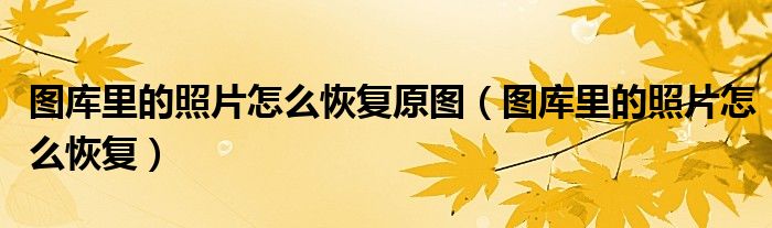 大家好,小晋来为大家解答以下问题,关于图库里的照片怎么恢复原图,图库里的照片怎么恢复很多人还不知道,今天让我们一起来看看吧!