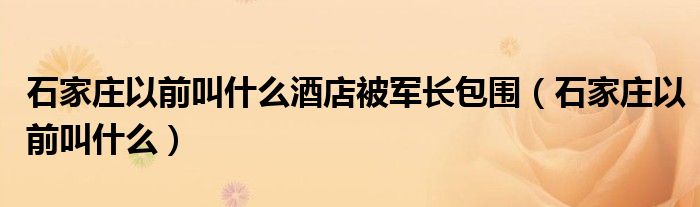 大家好,小晋来为大家解答以下问题,关于石家庄以前叫什么酒店被军长包围,石家庄以前叫什么很多人还不知道,今天让我们一起来看看吧!