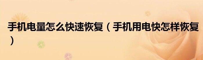 大家好,小晋来为大家解答以下问题,关于手机电量怎么快速恢复,手机用电快怎样恢复很多人还不知道,今天让我们一起来看看吧!