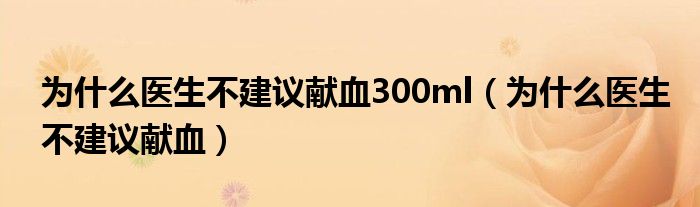 大家好,小晋来为大家解答以下问题,关于为什么医生不建议献血300ml,为什么医生不建议献血很多人还不知道,今天让我们一起来看看吧!